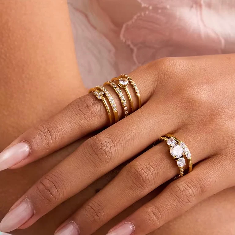 Whether worn at work, casually, or for evening wear the Jemima Ring adapts easily due to its low-profile dual-layer design and durable 18K PVD finish. The smooth structure prevents snagging, allowing it to stack comfortably or be worn alone without overpowering your look.