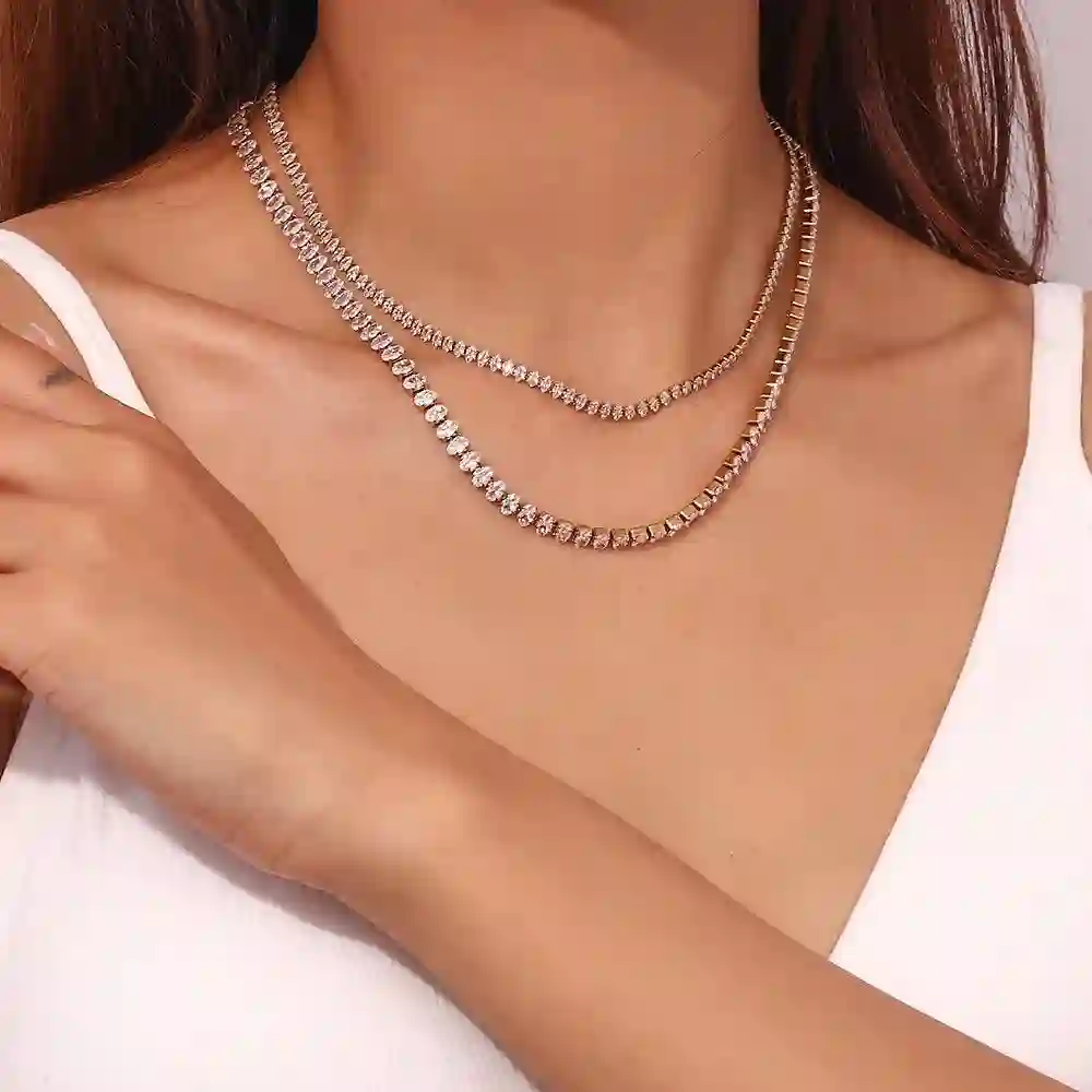 Linea necklace is waterproof and has the shinniest Zircon. Wear linea as a necklace for glamorous look or as choker for a chic look because linea has 5cm extender attached for resizing.Â